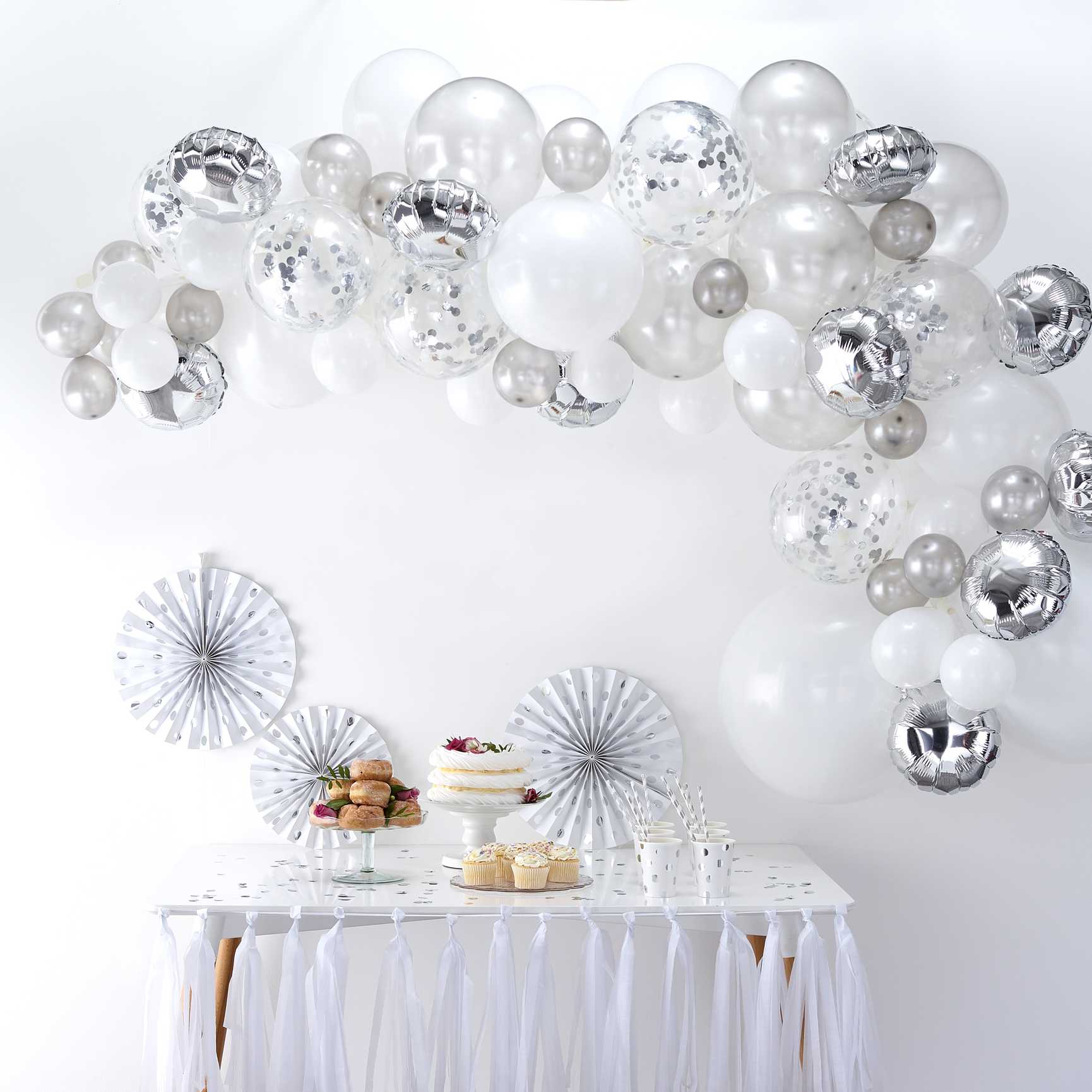 Αψίδα με Μπαλόνια σε Ασημί - Λευκό