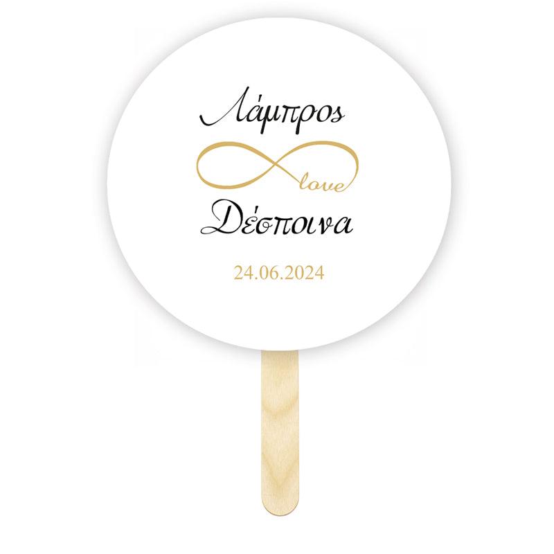 Τους καλοκαιρινούς μήνες η ζέστη είναι ανυπόφορη και οι γάμοι πολλοί! Βεντάλια γάμου με θέμα το σύμβολο άπειρο για να προσφέρετε στους καλεσμένους σας κατά τη διάρκεια του μυστηρίου ή της δεξίωσης και να τους δροσίσετε!
