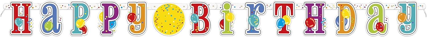 Αυτή η πολύχρωμη Γιρλάντα "Happy Birthday" είναι μία υπέροχη προσθήκη στο πάρτι σας. Διακοσμήστε με αυτήν τη Γιρλάντα τοίχους,παράθυρα,το τραπέζι σας η οποιαδήποτε άλλη επιφάνεια θέλετε να διακοσμήσετε. Εχει μήκος 2,13μ και μπορείτε να συμπληρώσετε την ηλικία που θέλετε με τα νούμερα απο 1-10 που περιλαμβάνονται στη συσκευασία. Μπορείτε να συσκευάσετε τη Γιρλάντα προσεκτικά και να τη ξαναχρησιμοποιήσετε.