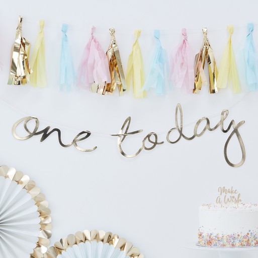 Αυτή η Γιρλάντα 'One today" ειναι η ιδανική για να γιορτάσετε τα 1α Γενέθλια του μωρού σας!!Εχει μέγεθος 1.5 μ.