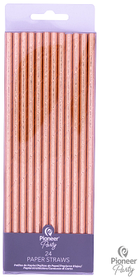 Καλαμάκια Χάρτινα Ροζ Χρυσό 19 εκ / 24 τεμ