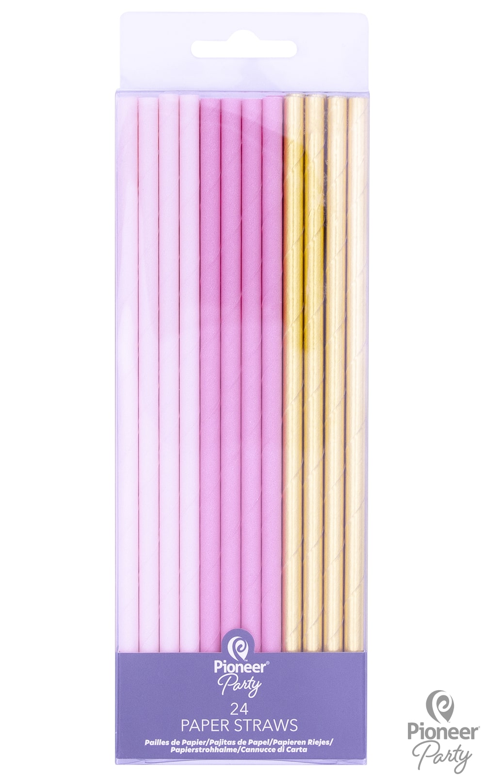 Καλαμάκια Χάρτινα Ροζ & Χρυσό 19 εκ / 24 τεμ