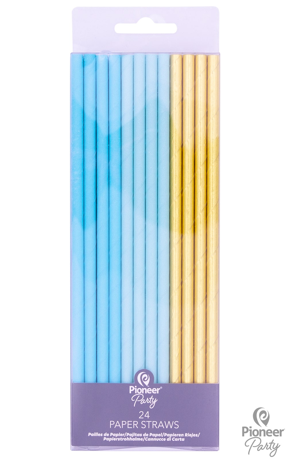 Καλαμάκια Χάρτινα Σιέλ & Χρυσό 19 εκ / 24 τεμ