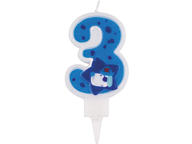 Κερί Νούμερο "3" Μπλε / 8 εκ