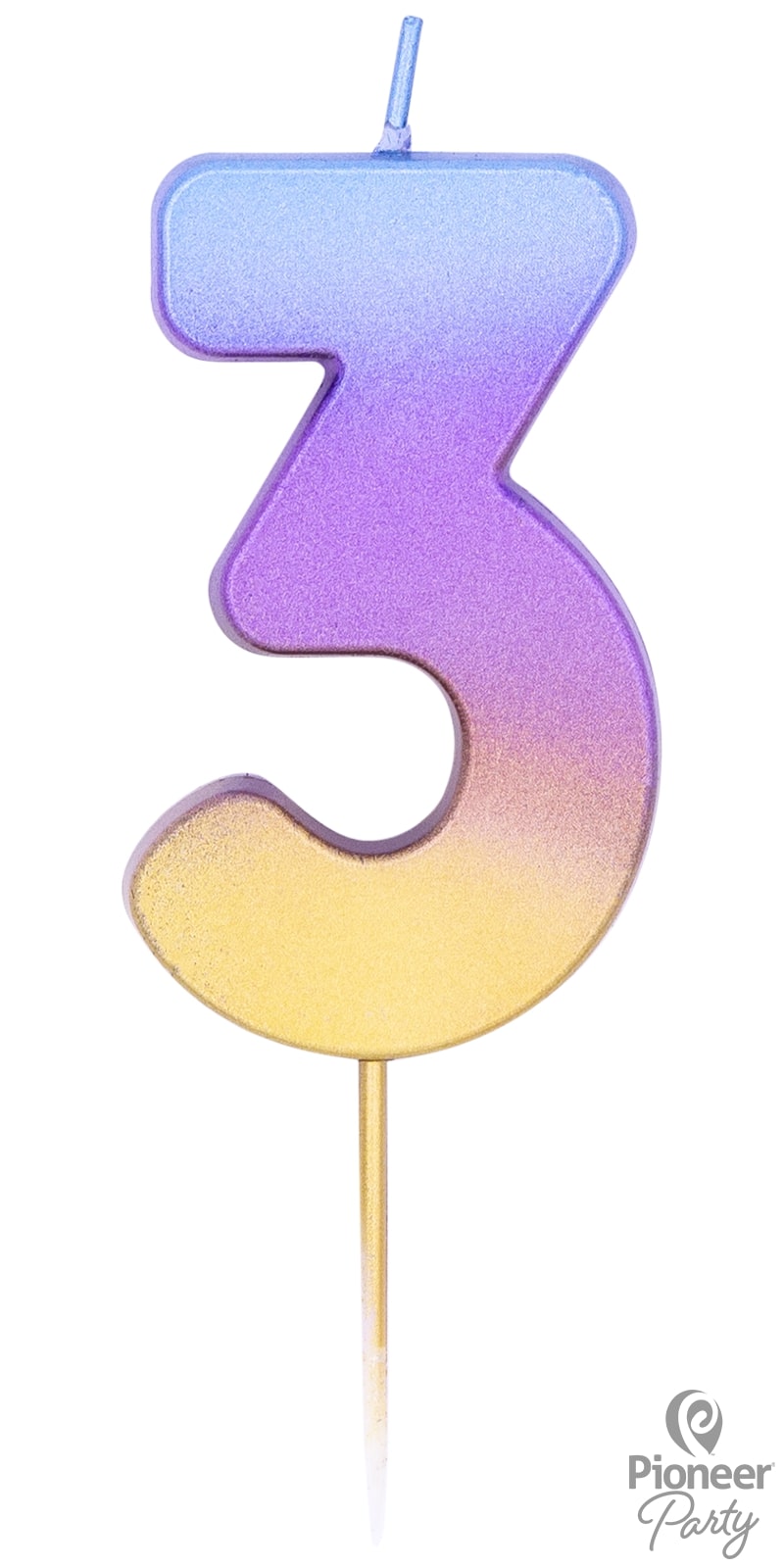 Κερί Νούμερο "3" Rainbow Ombre / 6.7 εκ