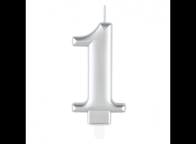 Κερί "1" ασημί μεταλλικό / 8 εκ.