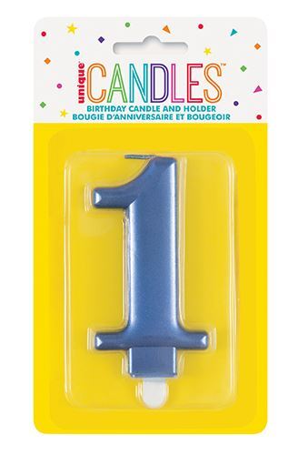 Κερί "1" Μεταλλικό Μπλέ / 8 εκ.