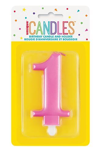 Κερί "1" Μεταλλικό Ροζ / 8 εκ.