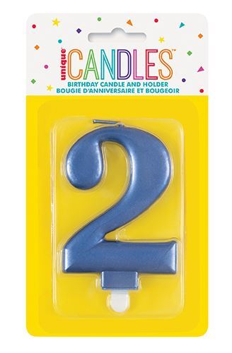 Κερί "2" Μεταλλικό Μπλέ / 8 εκ.