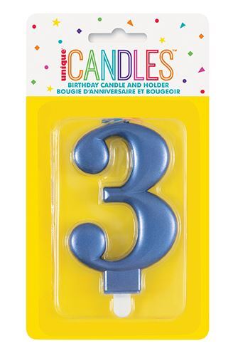 Κερί "3" Μεταλλικό Μπλέ / 8 εκ.