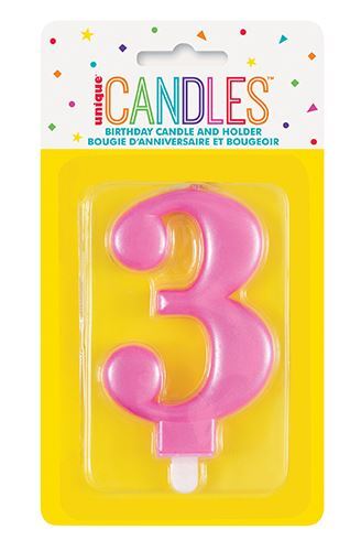Κερί "3" Μεταλλικό Ροζ / 8 εκ.