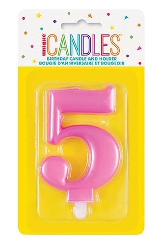 Κερί "5" Μεταλλικό Ροζ / 8 εκ.
