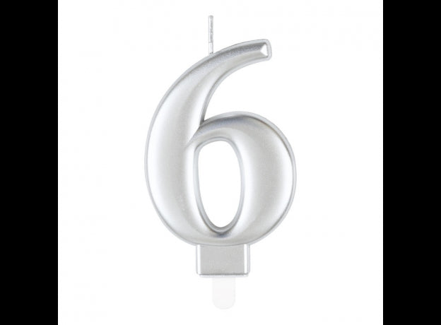 Κερί "6" ασημί μεταλλικό / 8 εκ.