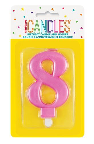 Κερί "8" Μεταλλικό Ροζ / 8 εκ.