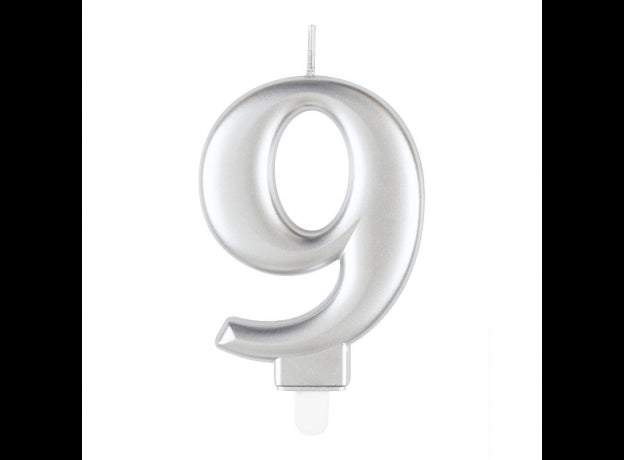 Κερί "9" ασημί μεταλλικό / 8 εκ.
