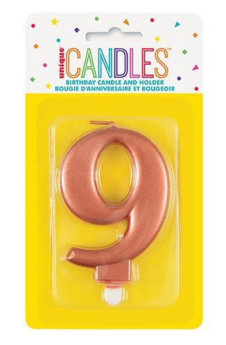 Κερί "9" Μεταλλικό Ροζ Χρυσό / 8 εκ.