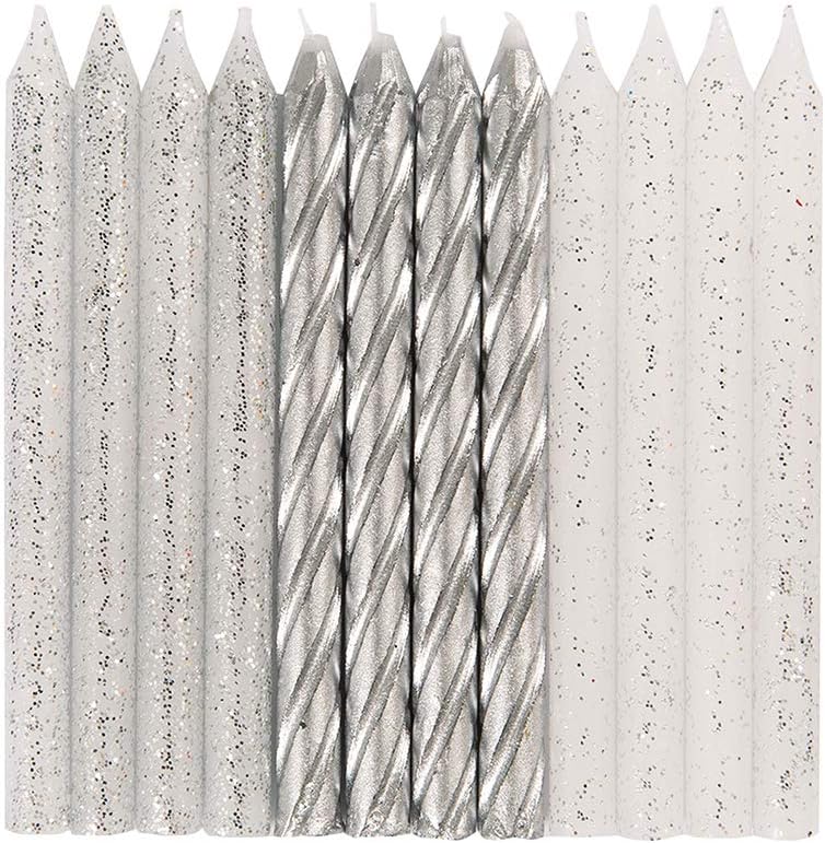 Κεριά Γενεθλίων σπιράλ Ασημί με Glitter 6 εκ. / 24 τεμ.