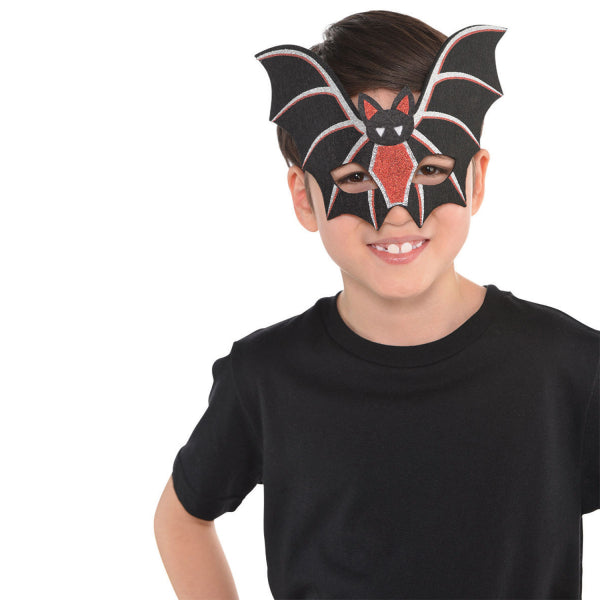 Children's Bat Mask, Silver/Red/Black Size Approx. 24 x 16 cm Made of Polyester Felt Mask in Bat Shape with Glitter, Accessory for Halloween or Carnival, Costume