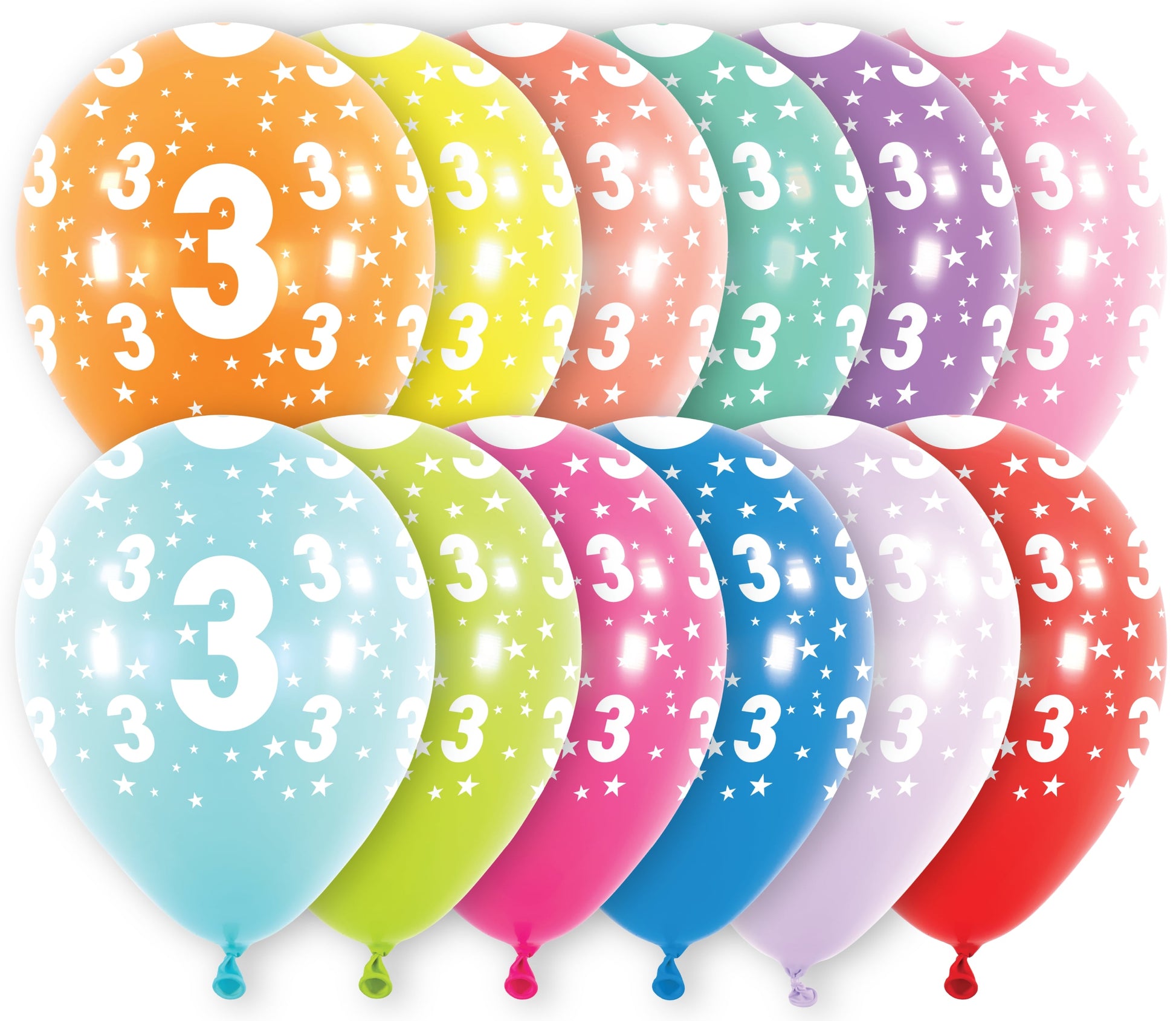 Μπαλόνια Λάτεξ 11 Νούμερο 3 με Αστέρια Ασορτί / 6 τμχ