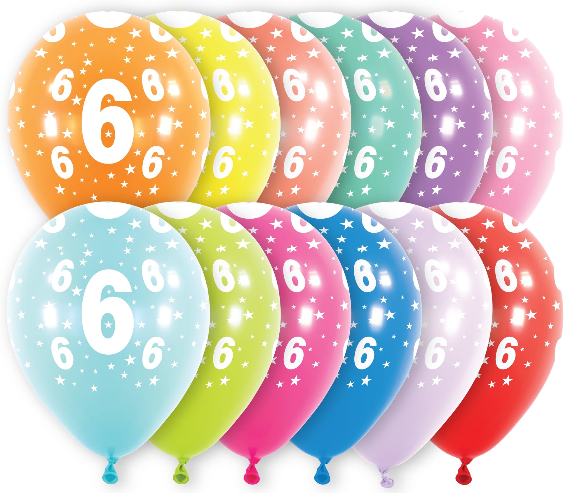 Μπαλόνια Λάτεξ 11 Νούμερο 6 με Αστέρια Ασορτί / 6 τμχ