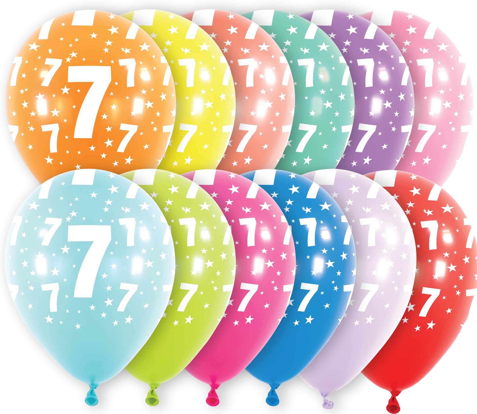 Μπαλόνια Λάτεξ 11" Νούμερο "7" με Αστέρια Ασορτί / 6 τμχ