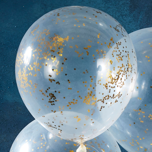 Μπαλόνια με Κομφετί Χρυσό Αστέρι / 5 τμχ