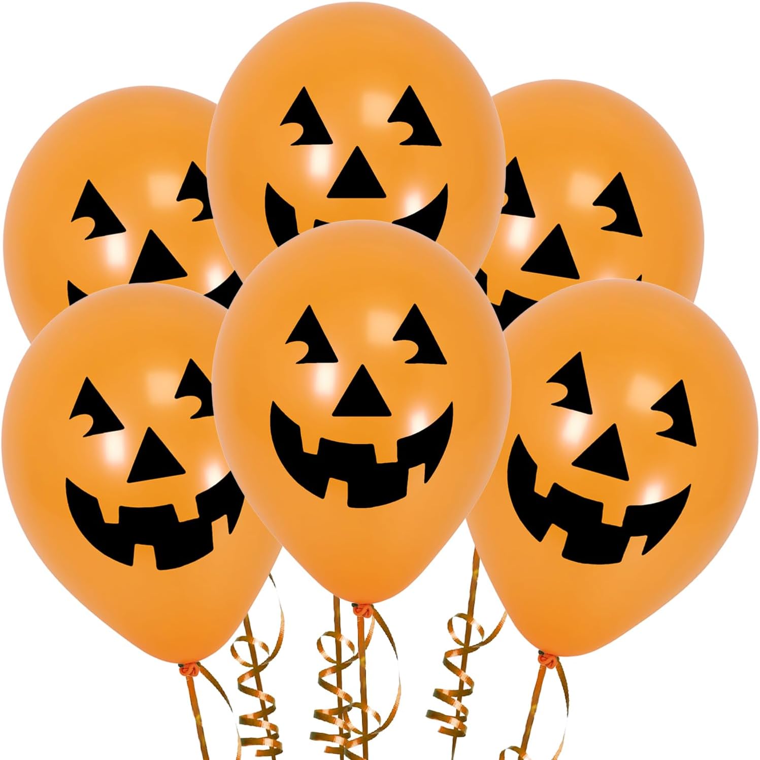 6 Μπαλόνια πορτοκαλί λαστιχένια 12"(30εκ όταν φουσκωθούν) τυπωμένα σε μία πλευρά με τη φατσούλα της σκανταλιάρας Κολοκύθας. Μπορείτε να τα φουσκώσετε με αέρα ή και με ήλιον και να τα συνδυάσετε και με άλλα Μπαλόνια με τις κορδέλλες τους σε χρώμα πορτοκαλί και μαύρο για ένα μοναδικό Halloween μπουκέτο που θα διακοσμήσει το πάρτι σας.