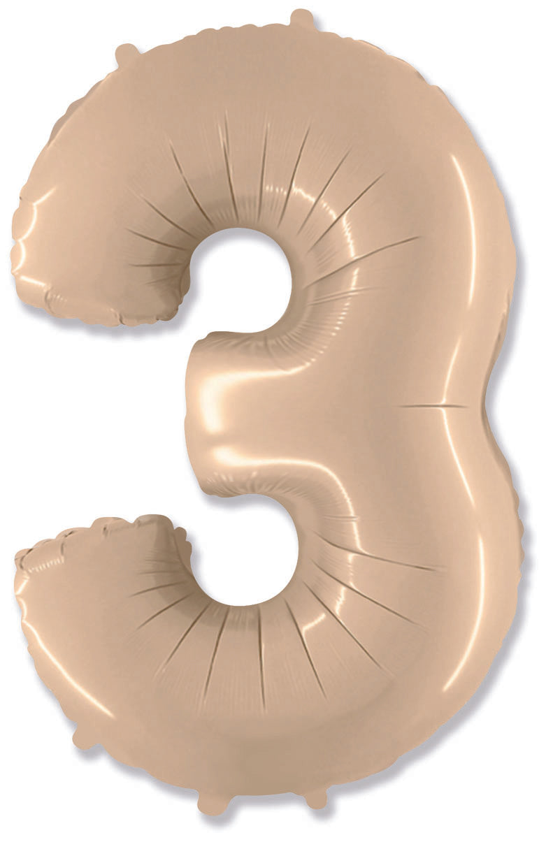 Μπαλόνι Σχήμα Νούμερο "3" Ιβουάρ - Satin Cream / 90 εκ ύψος - Ασυσκεύαστο