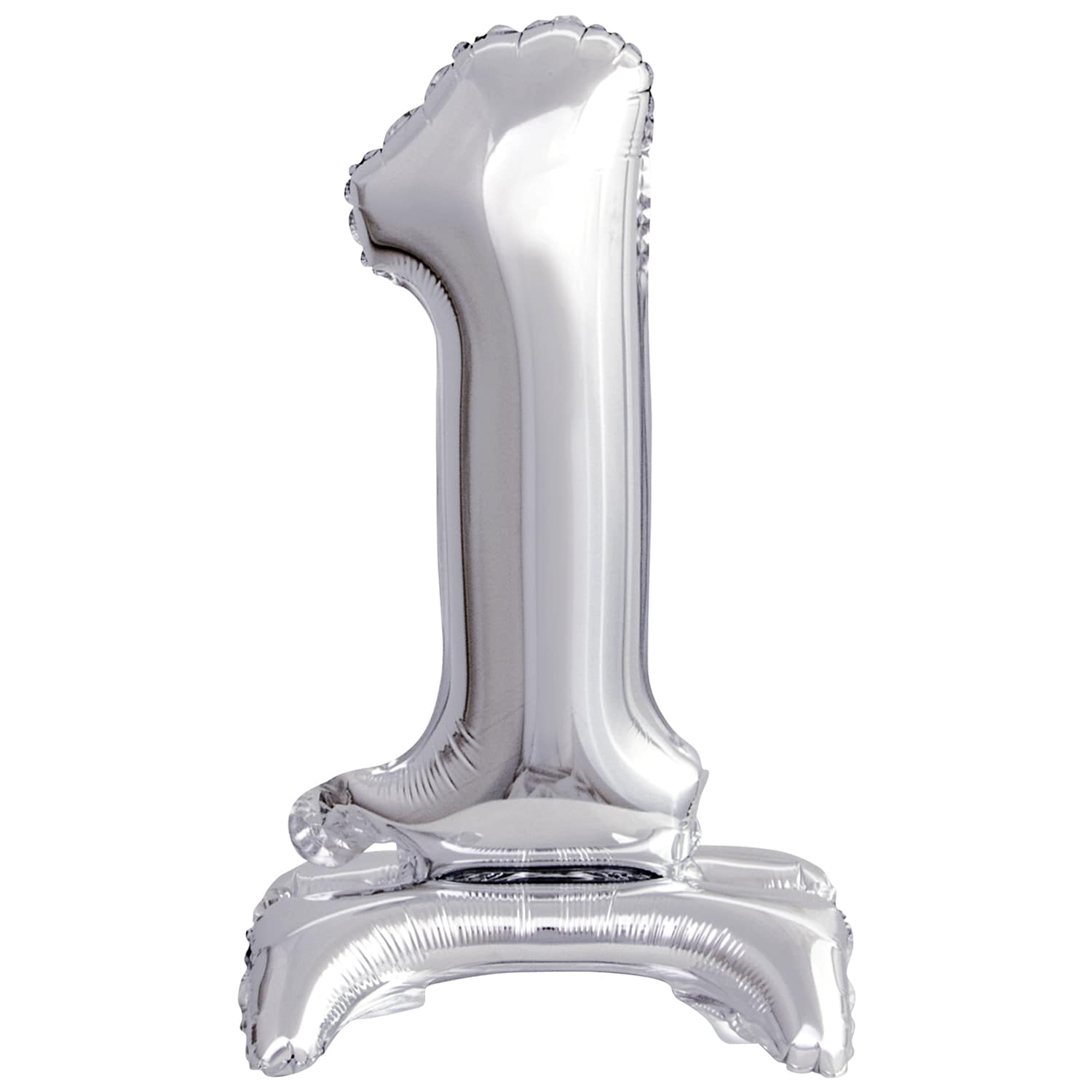 Μπαλόνι Φοιλ Μίνι με βάση Νούμερο "1" Ασημί 38εκ για φούσκωμα με αέρα