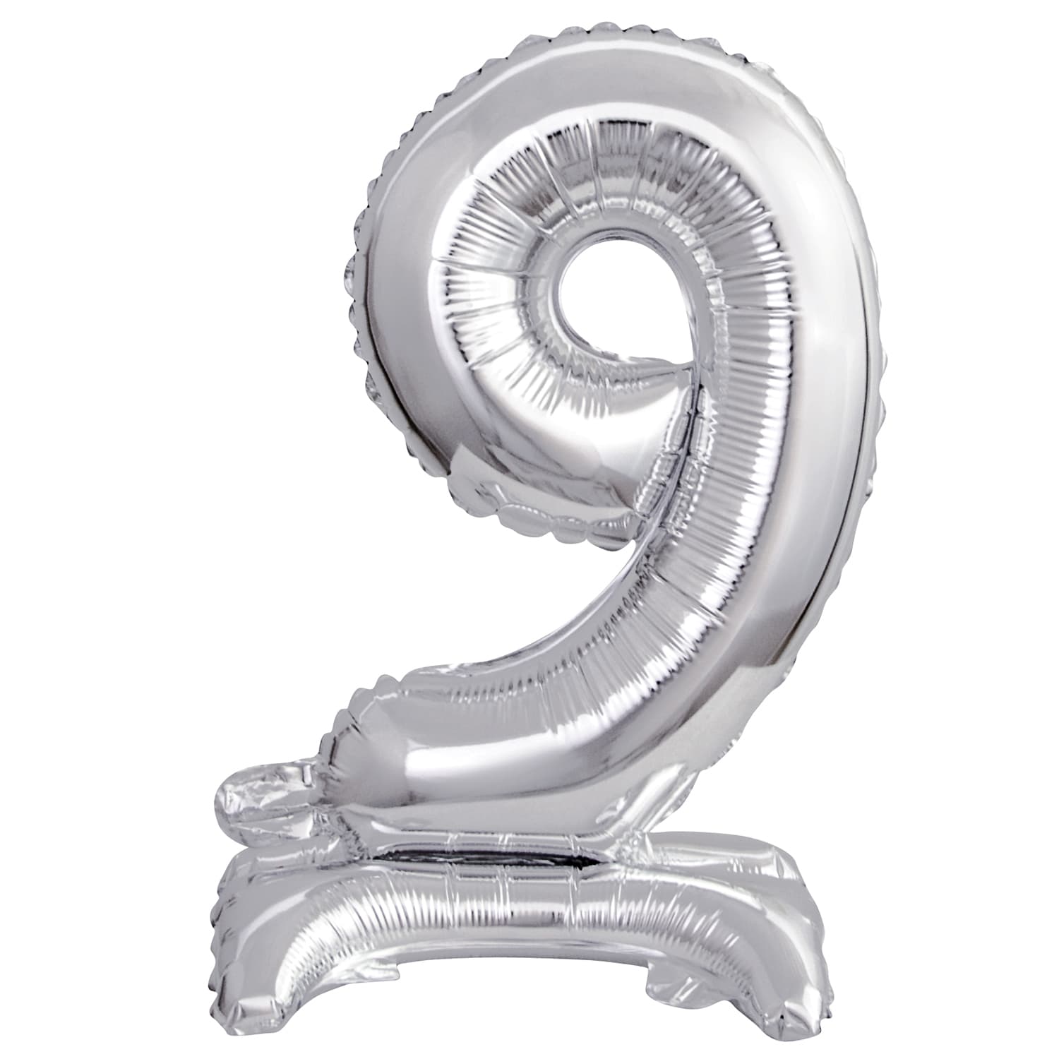 Μπαλόνι Φοιλ Μίνι με βάση Νούμερο "9" Ασημί 38εκ για φούσκωμα με αέρα