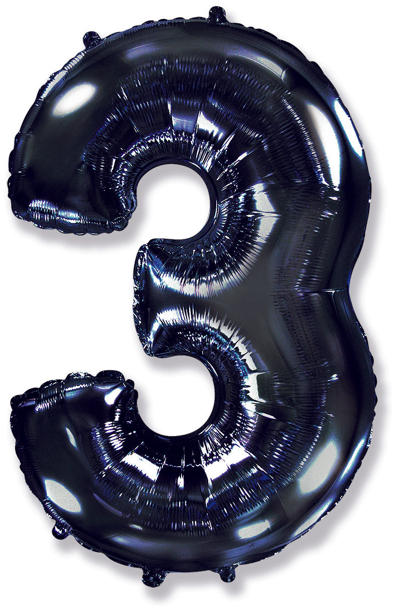Μπαλόνι Φοιλ Σχήμα Μαύρο Νούμερο "3" Ασυσκεύαστο Νούμερα - Αριθμός - Αριθμοίύψος φουσκωμένο 90 εκ