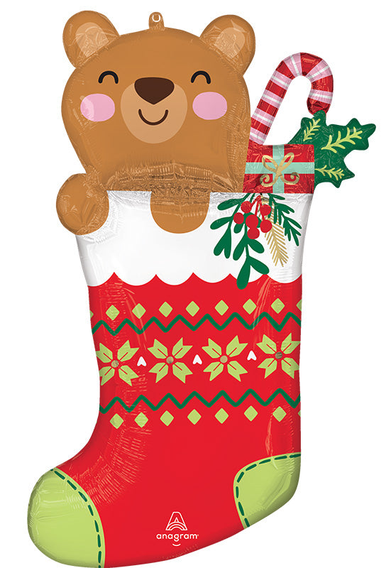 Μπαλόνι Φοιλ Σχήμα Χριστουγεννιάτικη Κάλτσα - Beary Christmas / 55 x 81εκ