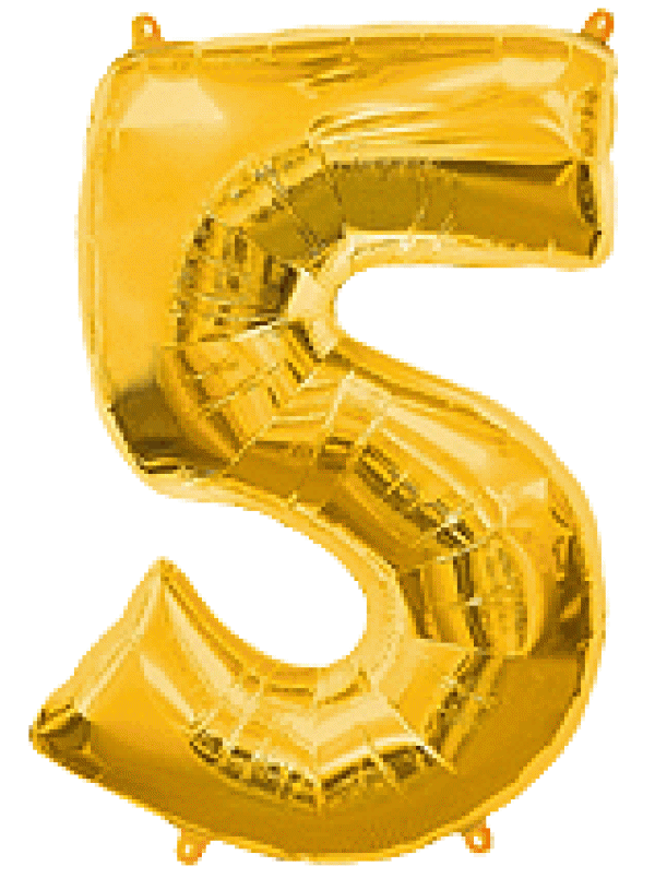 Μπαλόνι Φοιλ Σχήμα Χρυσό Νούμερο "5" ύψος φουσκωμένο 90εκ