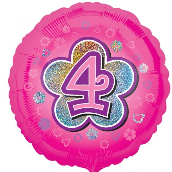 Μπαλόνι Φοιλ 18" Νούμερο "4" Pink Flowers 45εκ