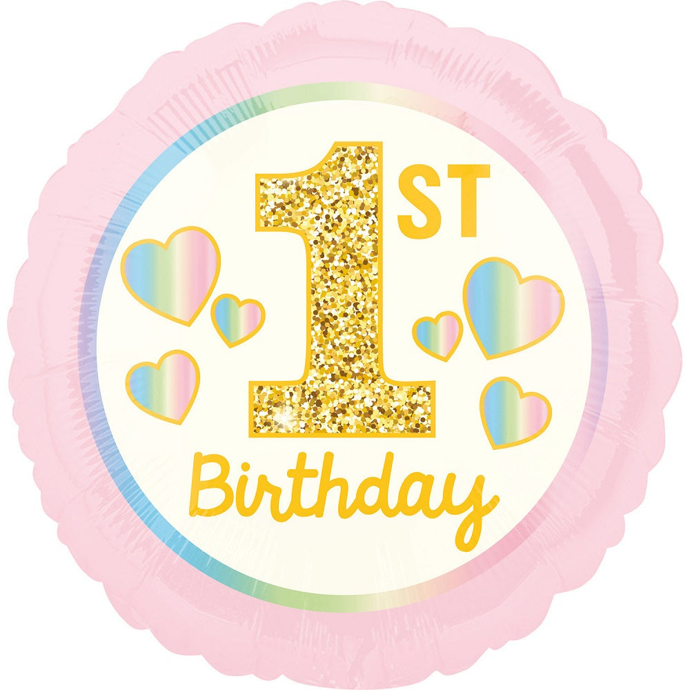 Μπαλόνι Φοιλ 18" Πρώτα Γενέθλια Ροζ και Χρυσό / 46 εκ