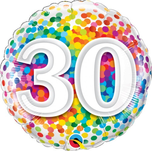 Μπαλόνι Φοιλ 18 Στρογ. Νούμερο 30 Rainbow Confetti