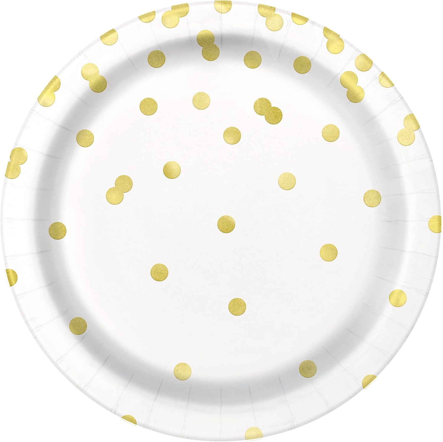 Αυτά τα Πιάτα φαγητού σε χρώμα λευκό με χρυσά πουά είναι ιδανικά για να σερβίρετε φαγητό στο πάρτι σας και πρέπει να τα συνδυάσετε με τα ασορτί Τραπεζομάντιλα, Χαρτοπετσέτες και αξεσουάρ για ένα μοναδικό αποτέλεσμα... Κάθε πακέτο περιέχει 8 τεμ