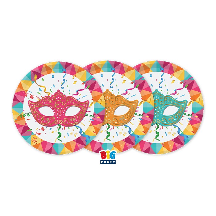 Πιάτα Χάρτινα Γλυκού 18εκ Μάσκα Καρναβάλι / 6 τεμ.