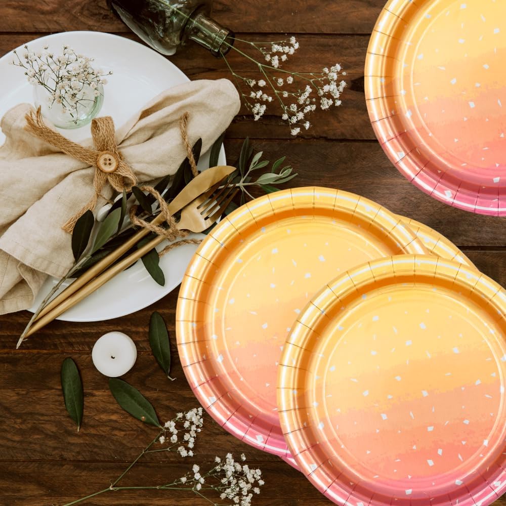 Πιάτα Χάρτινα 23 εκ Ροζ Χρυσό Ombre / 8 τεμ