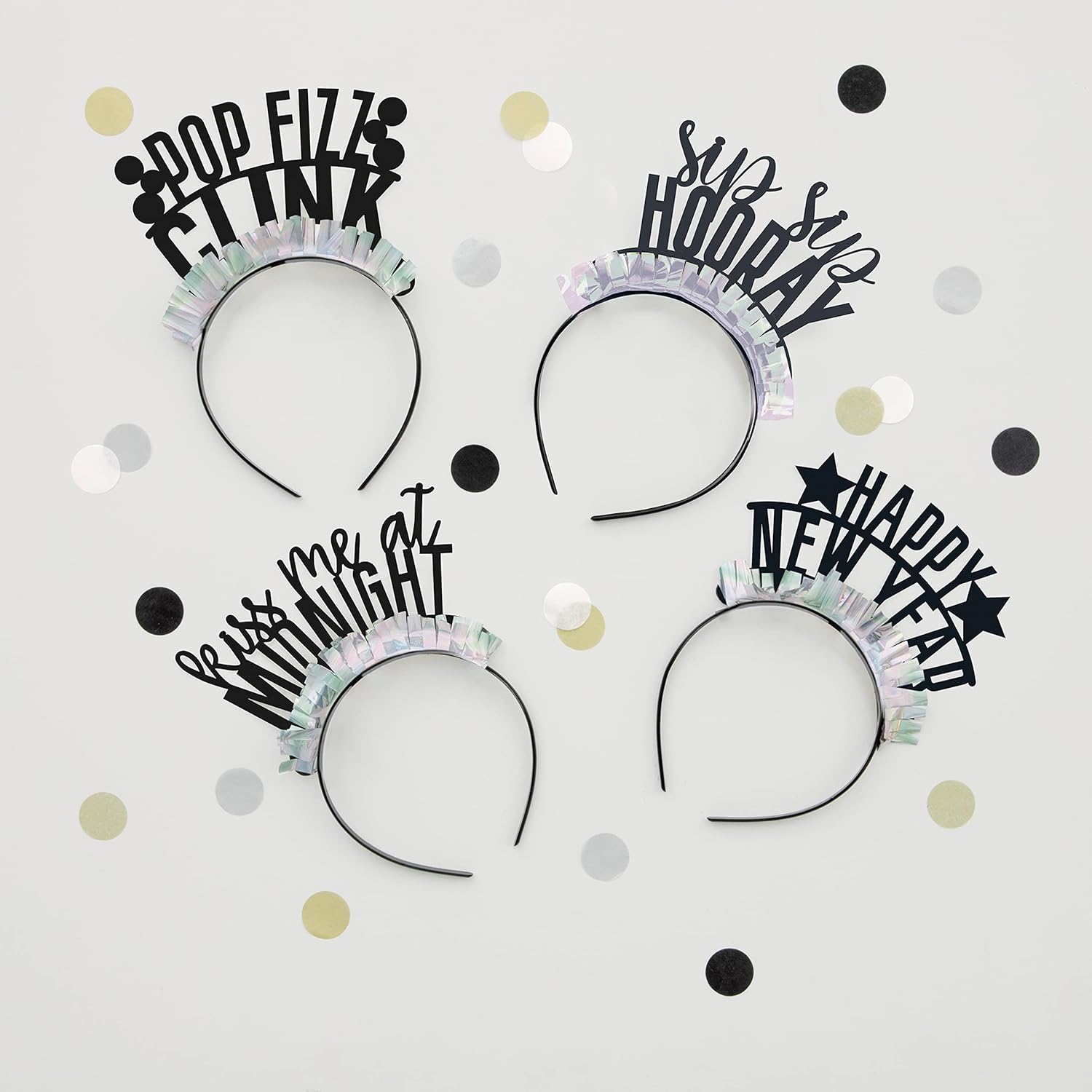 Τιάρες Μαύρο Χρυσό & Ασημί "New Year" σε πακέτο των 4 τεμ.