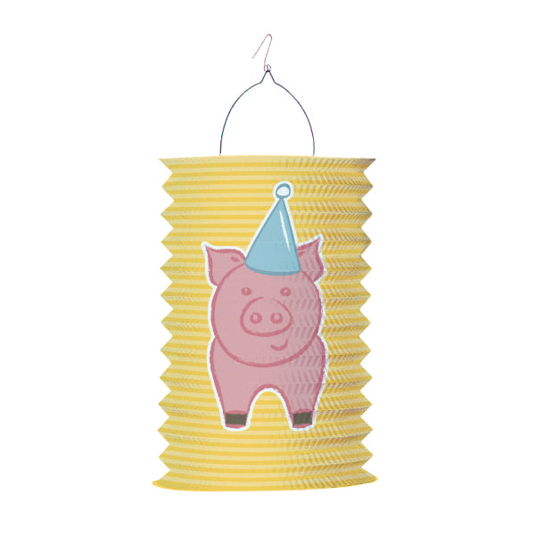 Τα φαναράκια, που σκορπούν ένα ζεστό φως, είναι ιδανικά για τη διακόσμηση ενός πάρτι γενεθλίων ή για πασχαλινές γιορτές. Αυτό το χαριτωμένο σχέδιο περιλαμβάνει ένα γουρουνάκι που φοράει καπέλο για πάρτι σε φωτεινό κίτρινο φόντο. Το φανάρι διαθέτει στο κάτω μέρος του μια υποδοχή κεριού στην οποία μπορεί να τοποθετηθεί ένα κερί.