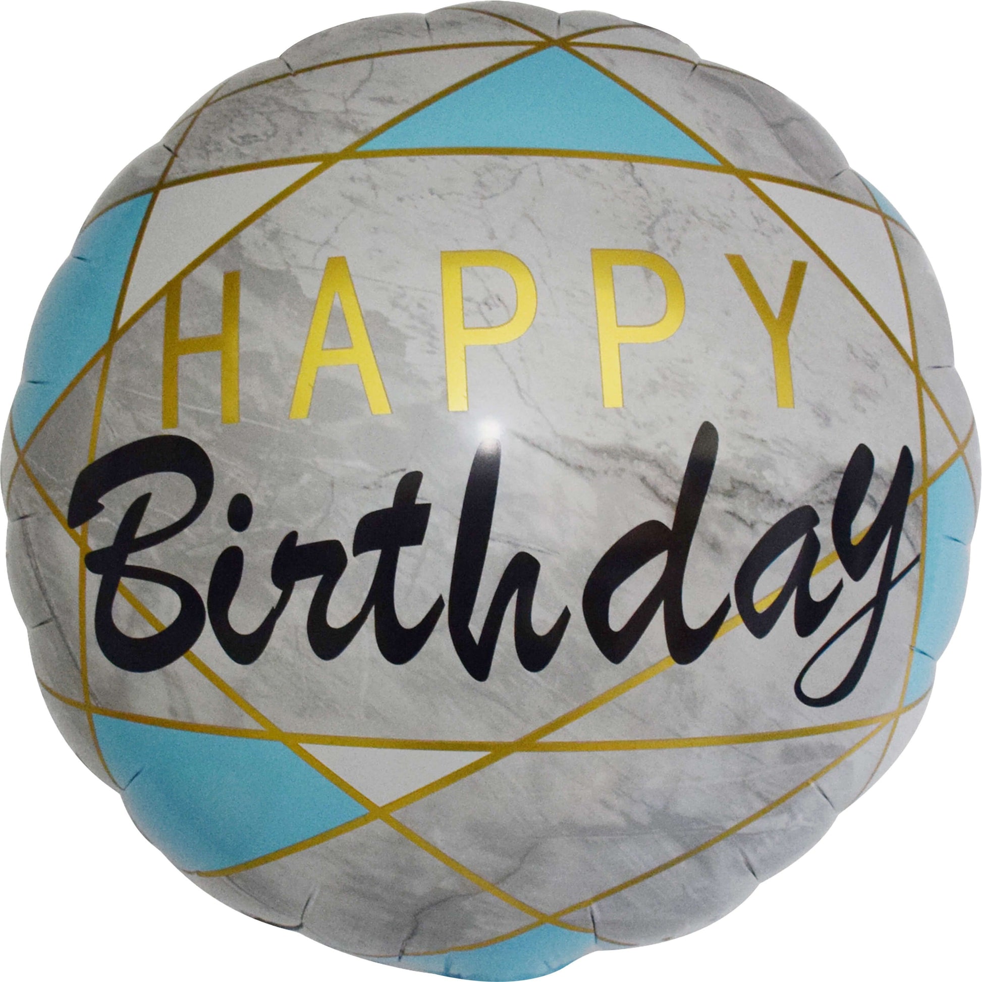 Εντυπωσιακό, foil μπαλόνι γενεθλίων με μήνυμα Happy Birthday και σχέδιο μάρμαρο σε χρώματα χρυσό και γαλάζιο.