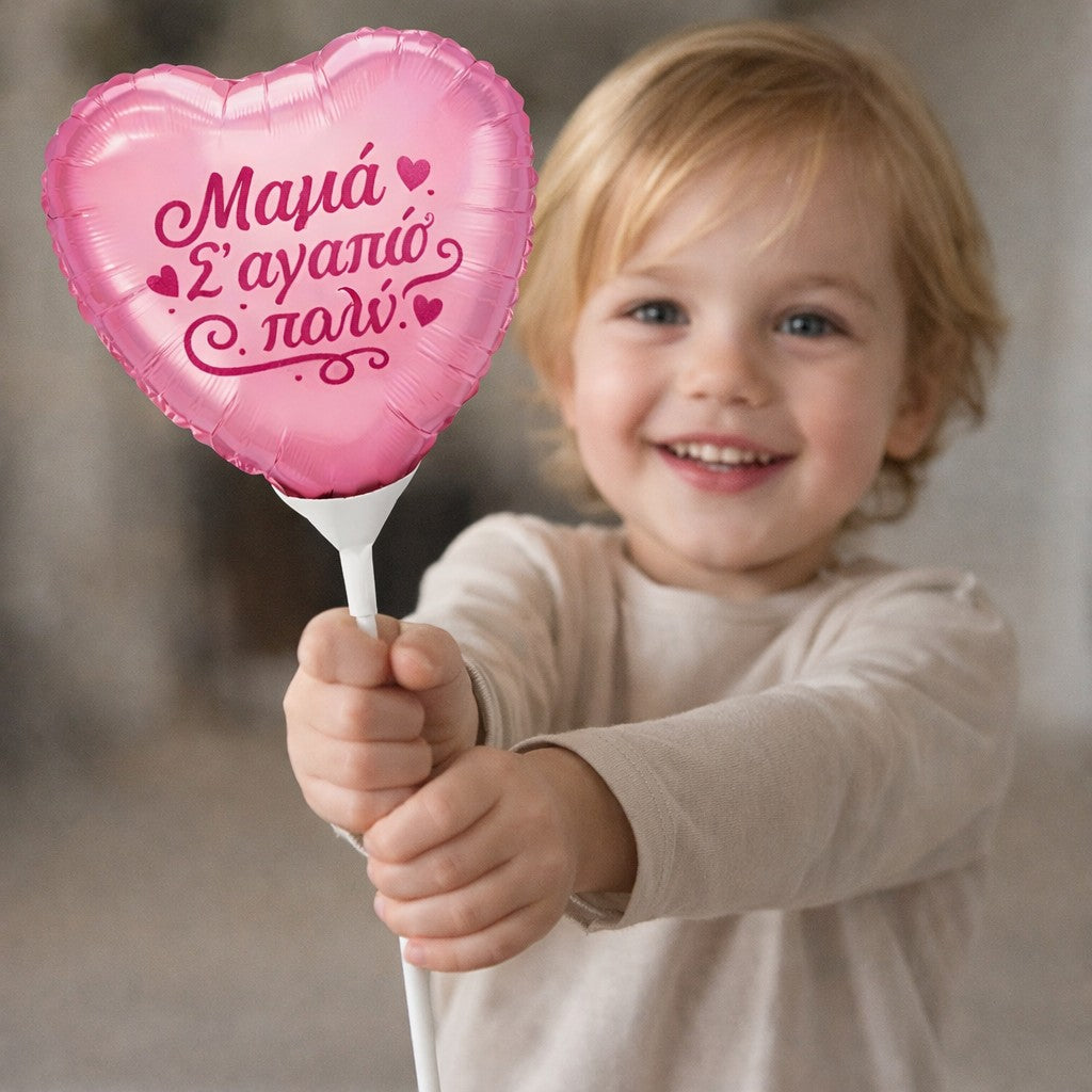 Όμορφο μπαλόνι σε σχήμα ροζ καρδιάς με το μήνυμα «Μαμά σ’ αγαπώ πολύ». Ιδανικό δώρο για τη Γιορτή της Μητέρας, τα γενέθλιά της ή και χωρίς αφορμή, απλώς για να της πεις «σ’ αγαπώ» με έναν τρυφερό και πρωτότυπο τρόπο και να της χαρίσεις ένα χαμόγελο.