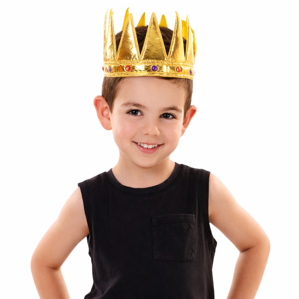 Αποκριάτικο αξεσουάρ χρυσό στέμμα Βασιλιά, για εντυπωσιακές και χαριτωμένες εμφανίσεις που ολοκληρώνουν τέλεια κάθε αποκριάτικη στολή.
