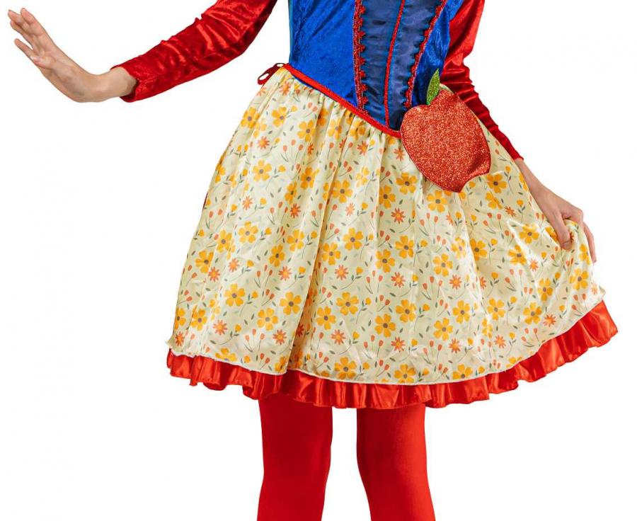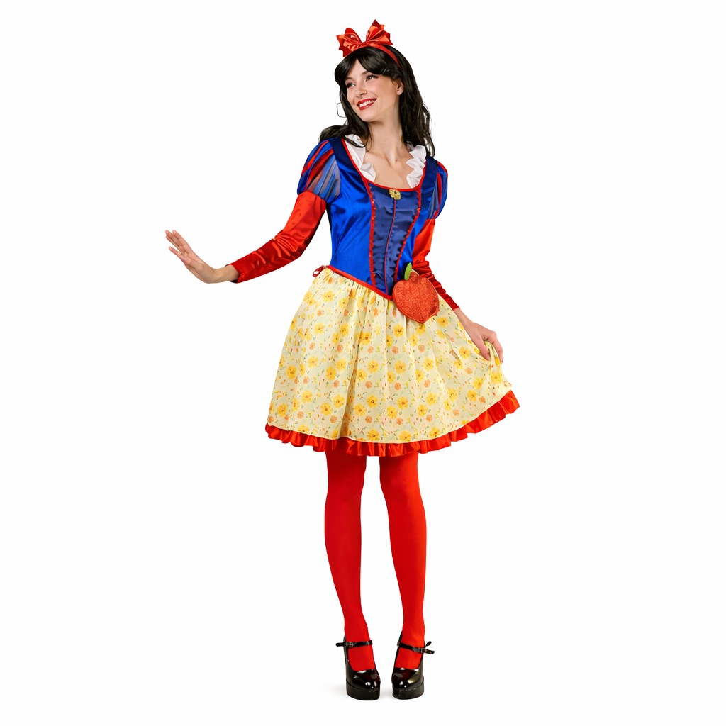 Στολή Ενηλίκων Χιονάτη, ιδανική για αποκριάτικες μεταμφιέσεις και θεματικά πάρτι. Το σετ περιλαμβάνει φόρεμα, στέκα και τσαντάκι, προσφέροντας ολοκληρωμένη και εντυπωσιακή εμφάνιση.