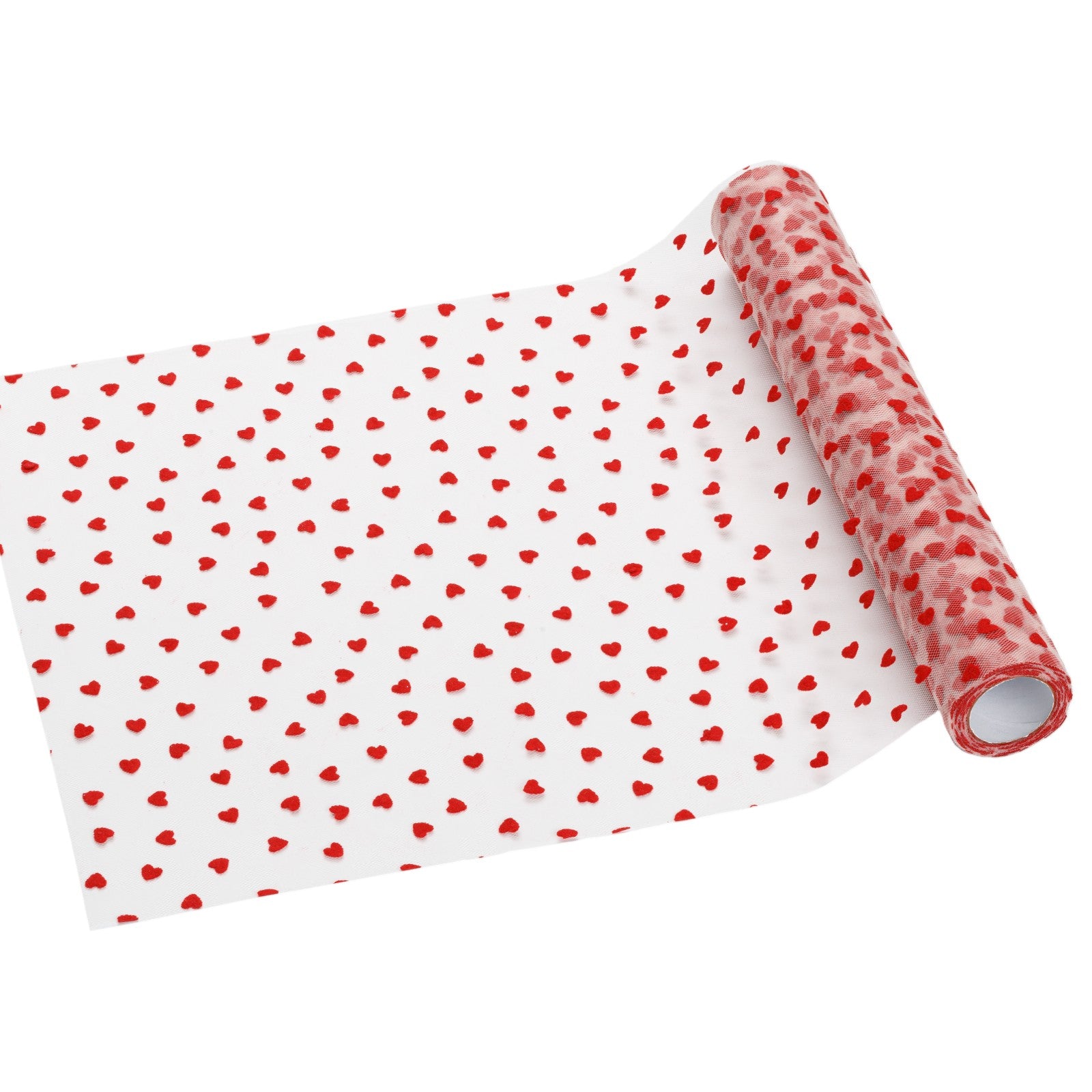 Runner τραπεζιού από τούλι με σχέδιο καρδιές, μήκους 9 μέτρων. Ιδανικό για ρομαντικές διακοσμήσεις, γιορτές, baby shower και πάρτι, προσθέτοντας αέρινη και κομψή πινελιά στο τραπέζι σας.