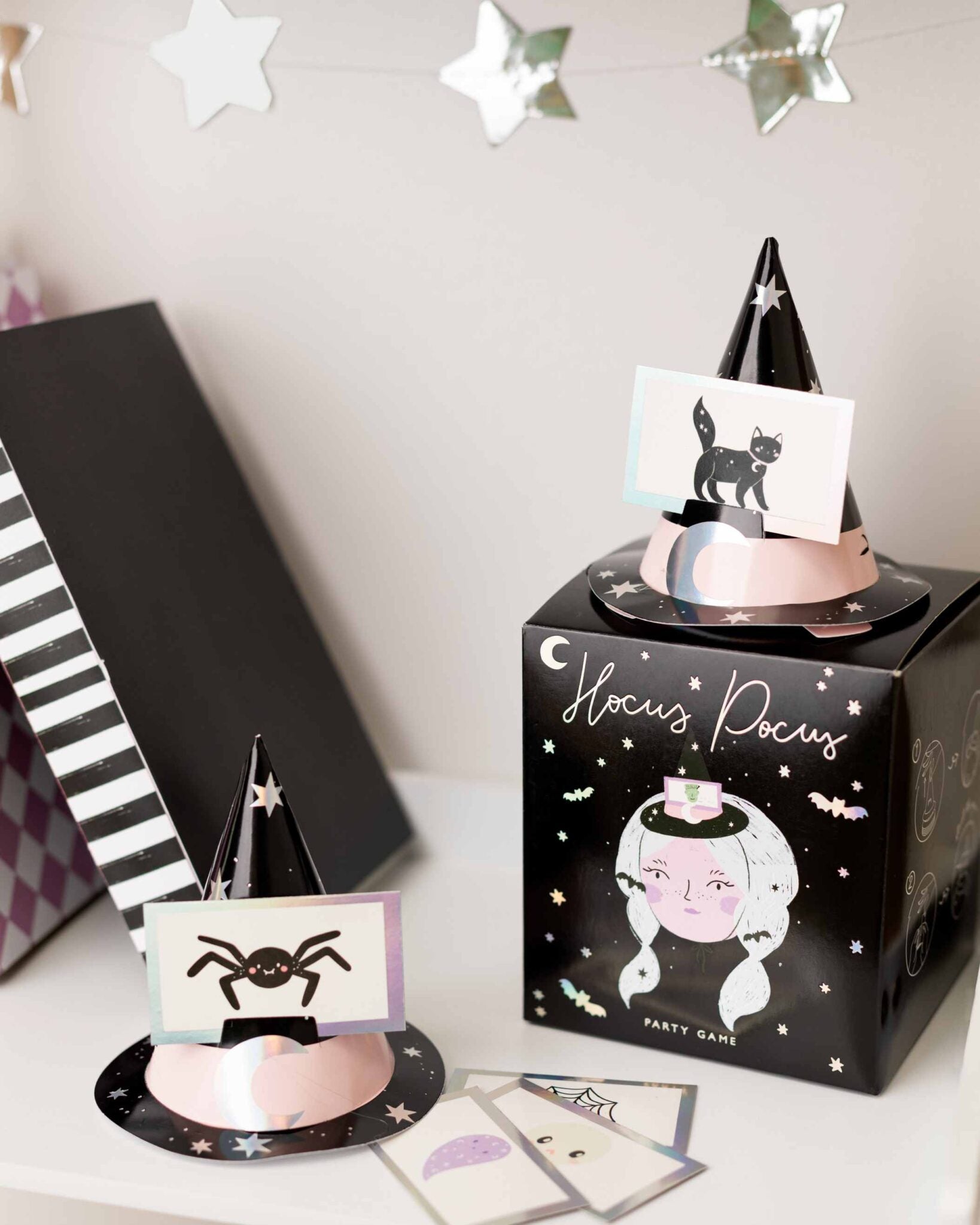 Περιλαμβάνονται 40 κάρτες με φιγούρες και 6 χάρτινα καπέλα Μάγισσας με λάστιχο