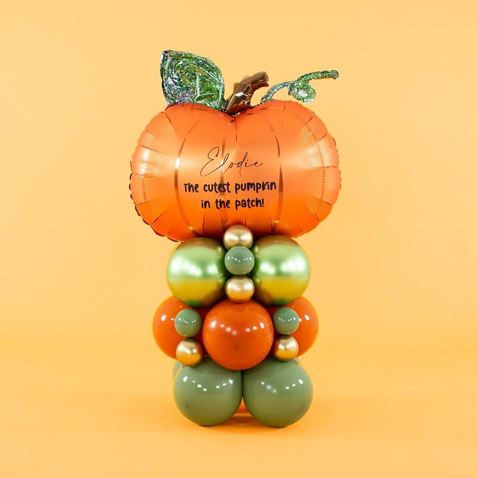 Μπαλόνι πορτοκαλί κολοκύθα με πράσινο glitter στα φύλλα, για μια Φθινοπωρινή διακόσμηση ή για το Halloween πάρτυ!