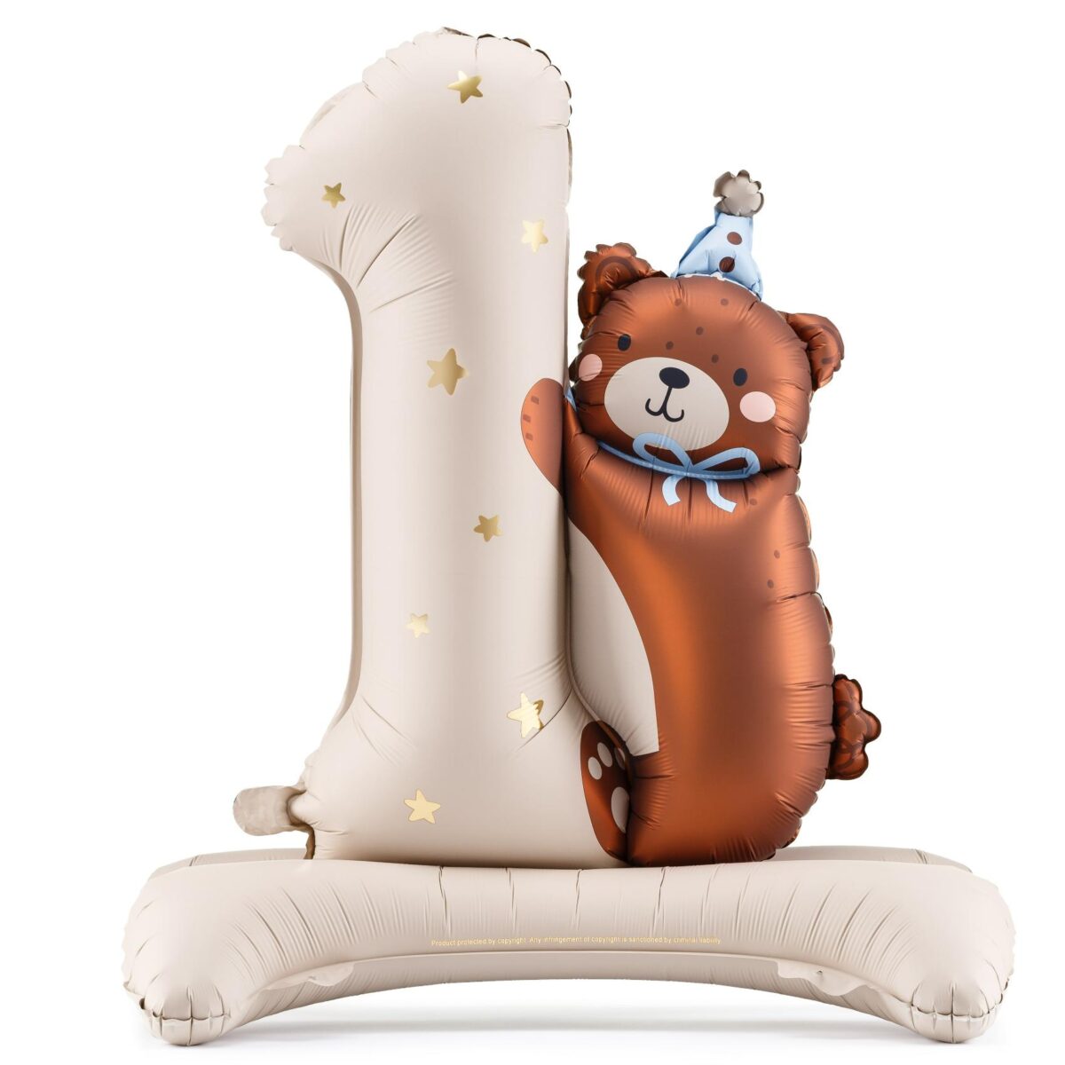 Μεγάλο μπαλόνι με τον αριθμό 1 και σχέδιο χαριτωμένο αρκουδάκι, για να διακοσμήσετε τα πρώτα γενέθλια του μωρού σας και να βγάλετε μοναδικές φωτογραφίες!