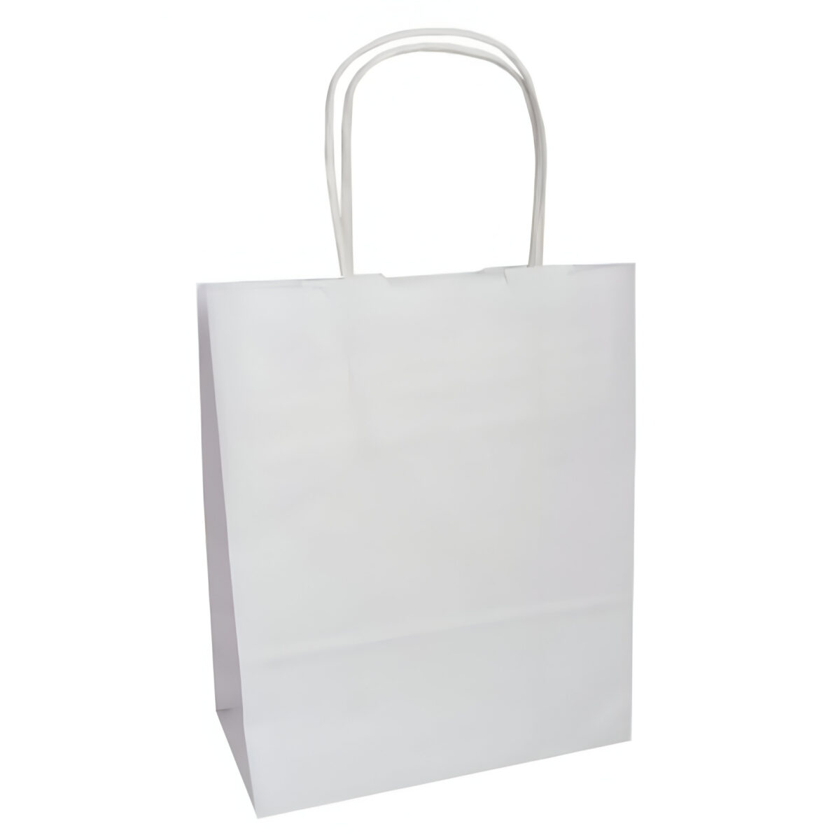 Χάρτινη τσάντα σε λευκό χρώμα για να προσφέρεις τα δωράκια των καλεσμένων! Ταιριάζει σε όλα τα πάρτυ ή τις βαπτίσεις! Μπορείς να κολλήσεις θεματικά αυτοκόλλητα σε κάθε σακουλάκι και να τα ταιριάξεις με την υπόλοιπη διακόσμηση της εκδήλωσης!
